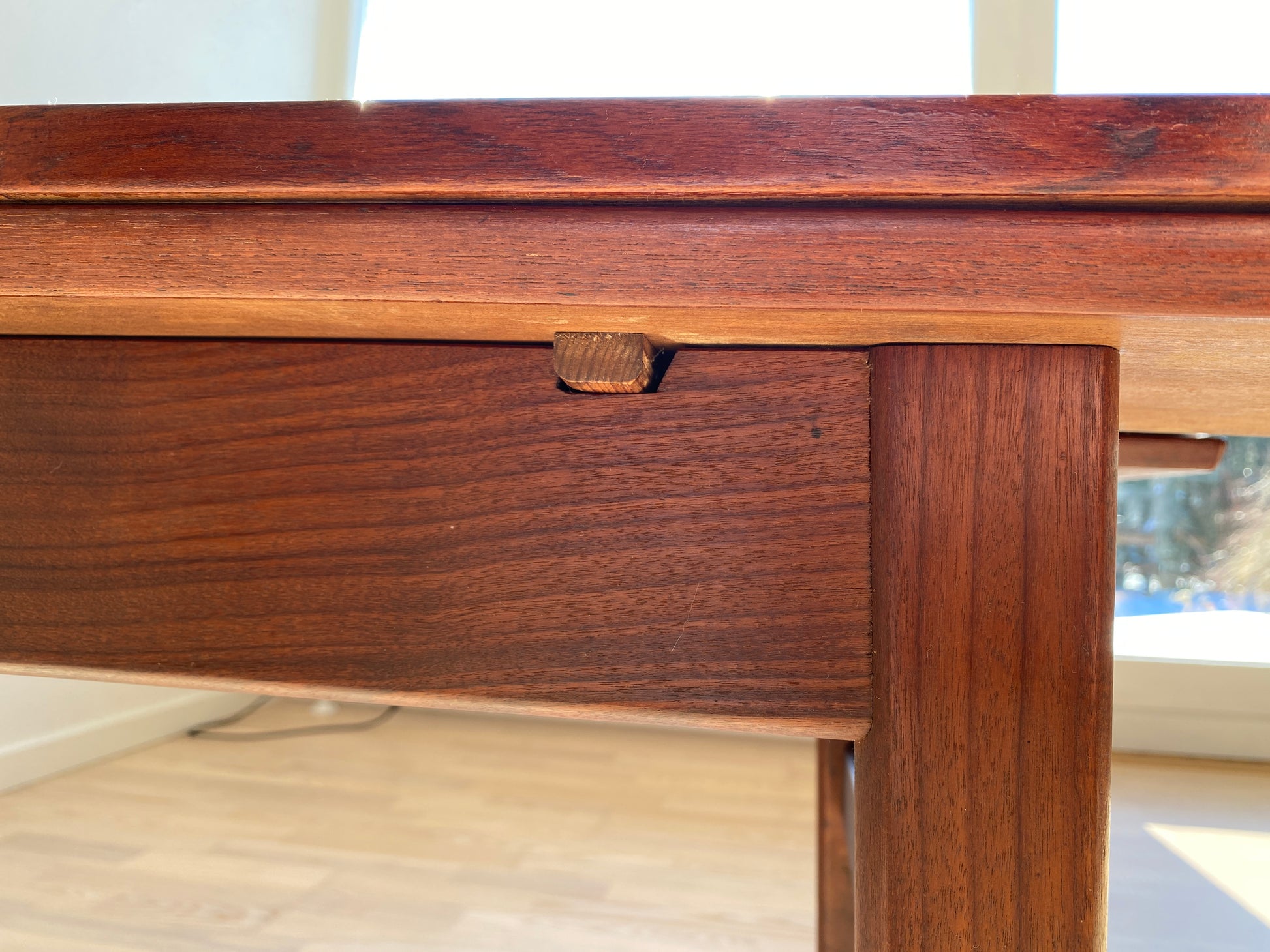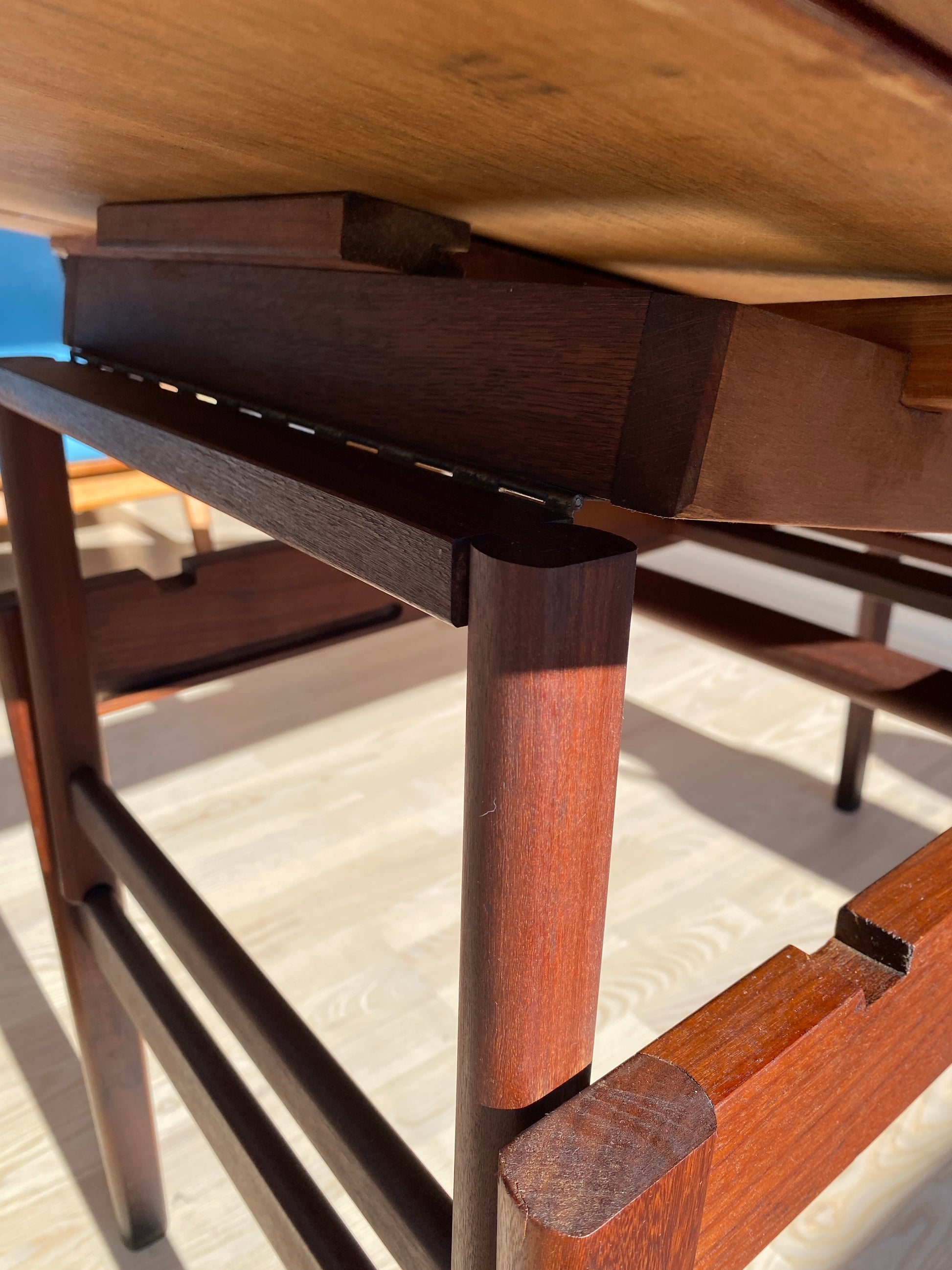 Unter der Oberfläche verbirgt sich präzise mechanische Tischlerei, typisch für klassisches dänisches Möbeldesign der Mid-Century-Ära. Stabil, langlebig und gebaut, um noch viele Jahrzehnte genutzt zu werden.